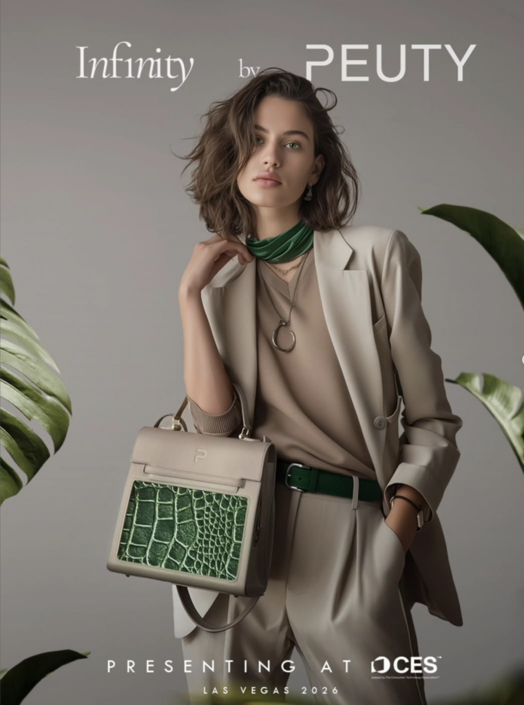 PEUTY created “Infinity”, the world’s first handbag capable of instantly changing colors and patterns via a flexible screen and mobile app.